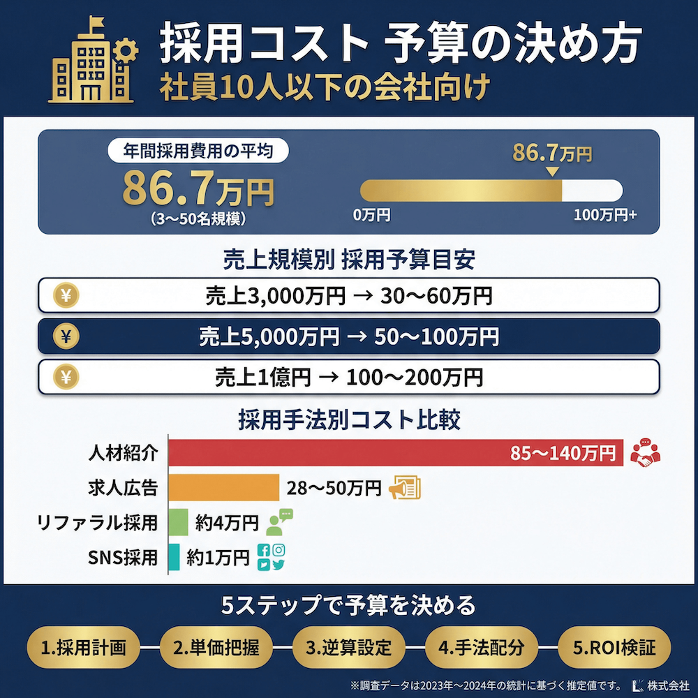 • 「売上の○%」という一律の基準は危険。自社の「粗利」から逆算して、採用コストとして投資できる上限額を決めるのが正解です。
